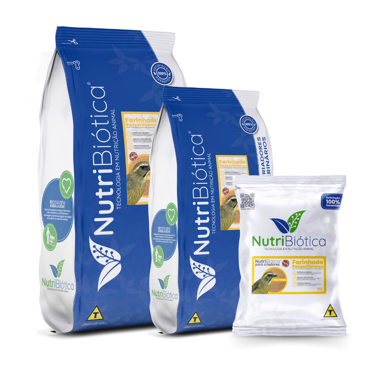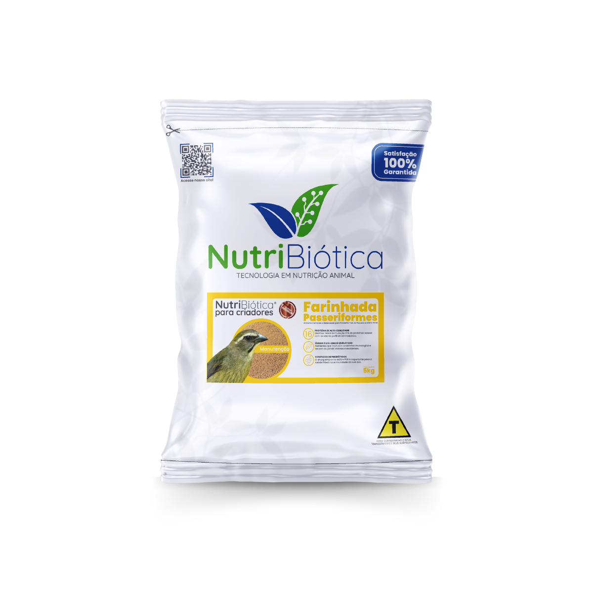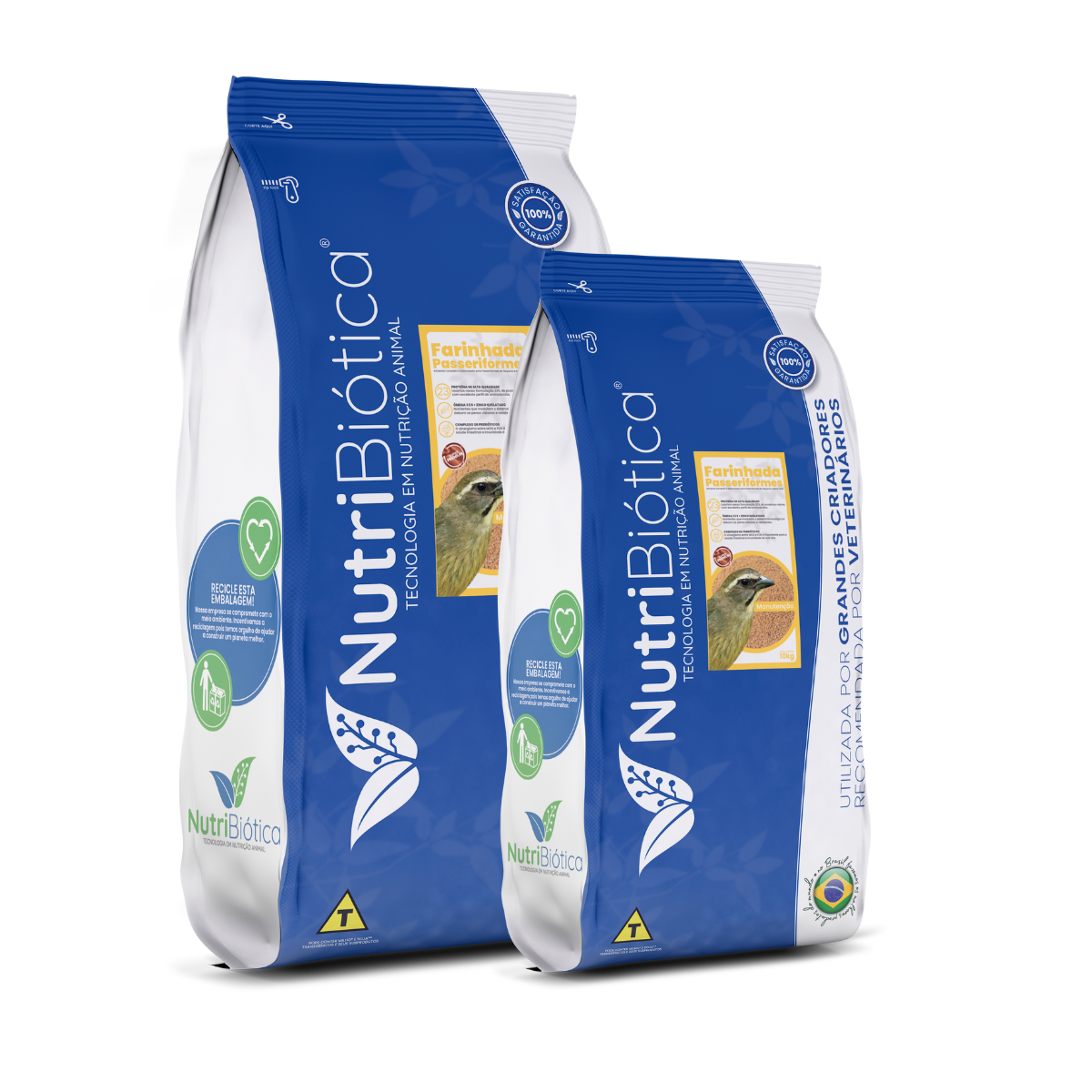 A Nutribiótica Farinhada Passeriformes Manutenção Super Premium é um alimento completo e balanceado para passeriformes nas fases de manutenção e reprodução. Embalagens plásticas com barreira luz e oxigênio de 5kg, 10kg e 15kg.