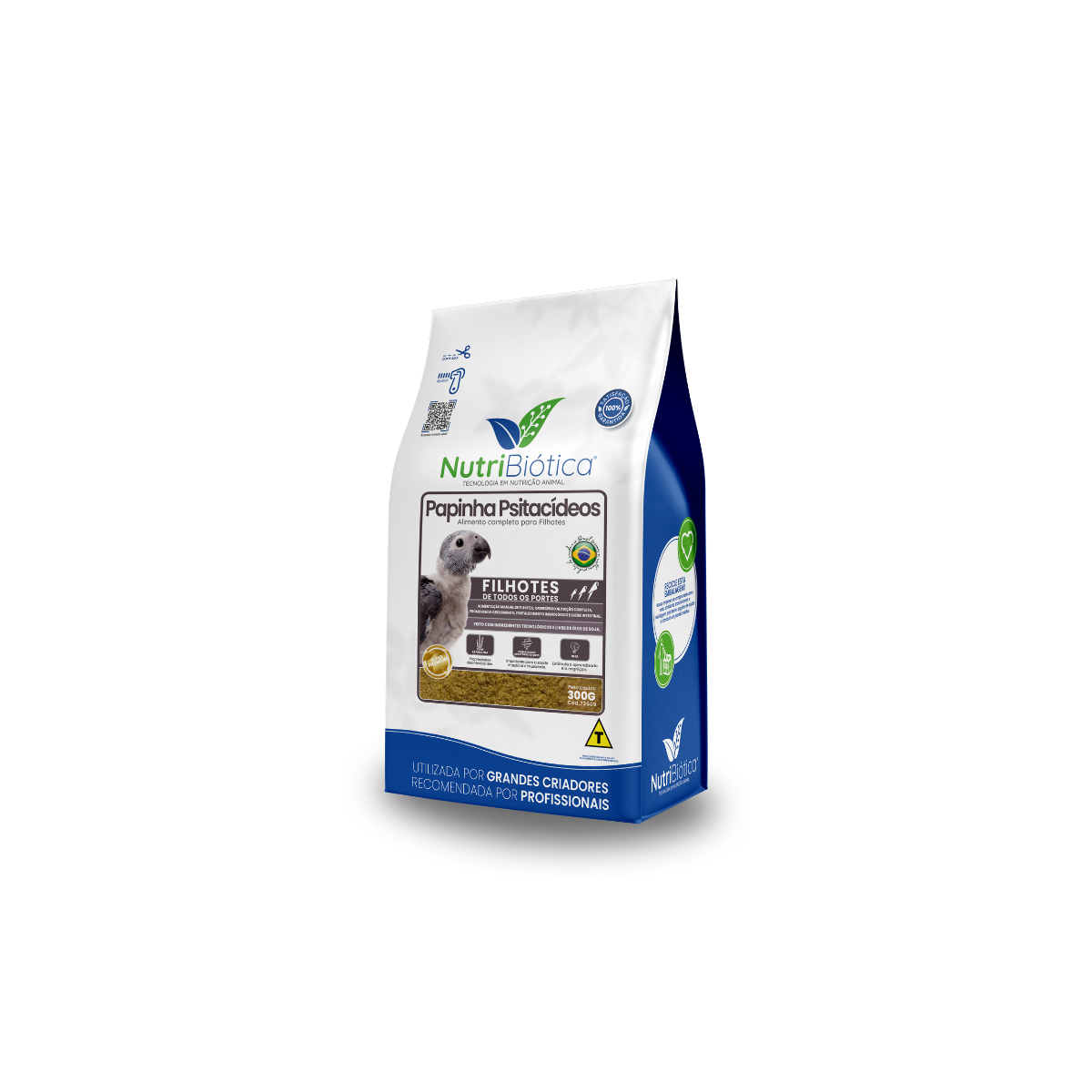 Nutribiótica Super Premium Papa Psitacídeos, para preparar o alimento Nutribiótica Super Premium Papinha Psitacídeos, dilua o produto em água filtrada ou fervida (depois de resfriada), na proporção de 1 parte de papinha para 2 partes de água, garantindo que a mistura esteja entre 33ºC e 38ºC. No primeiro dia de vida, forneça apenas soro de hidratação, e a partir do segundo dia, a papinha no mínimo três vezes ao dia, sem provocar a distenção excessiva do papo. Mantenha higiene rigorosa, lavando bem as mãos e desinfetando utensílios antes do uso, e prepare a papinha fresca a cada alimentação, descartando as sobras, usando utensílios de alimentação individual para prevenir doenças, e adaptando a frequência da alimentação à espécie, idade e saúde do filhote. Certifique-se de que a mistura está completamente homogenizada antes de servi-la. Consulte um médico veterinário ou zootecnista regularmente. Conservar em local seco e arejado, ao abrigo da luz e na embalagem original. Após aberto, manter a embalagem bem fechada e ao abrigo de luz solar e umidade, respeitando o prazo de validade.
