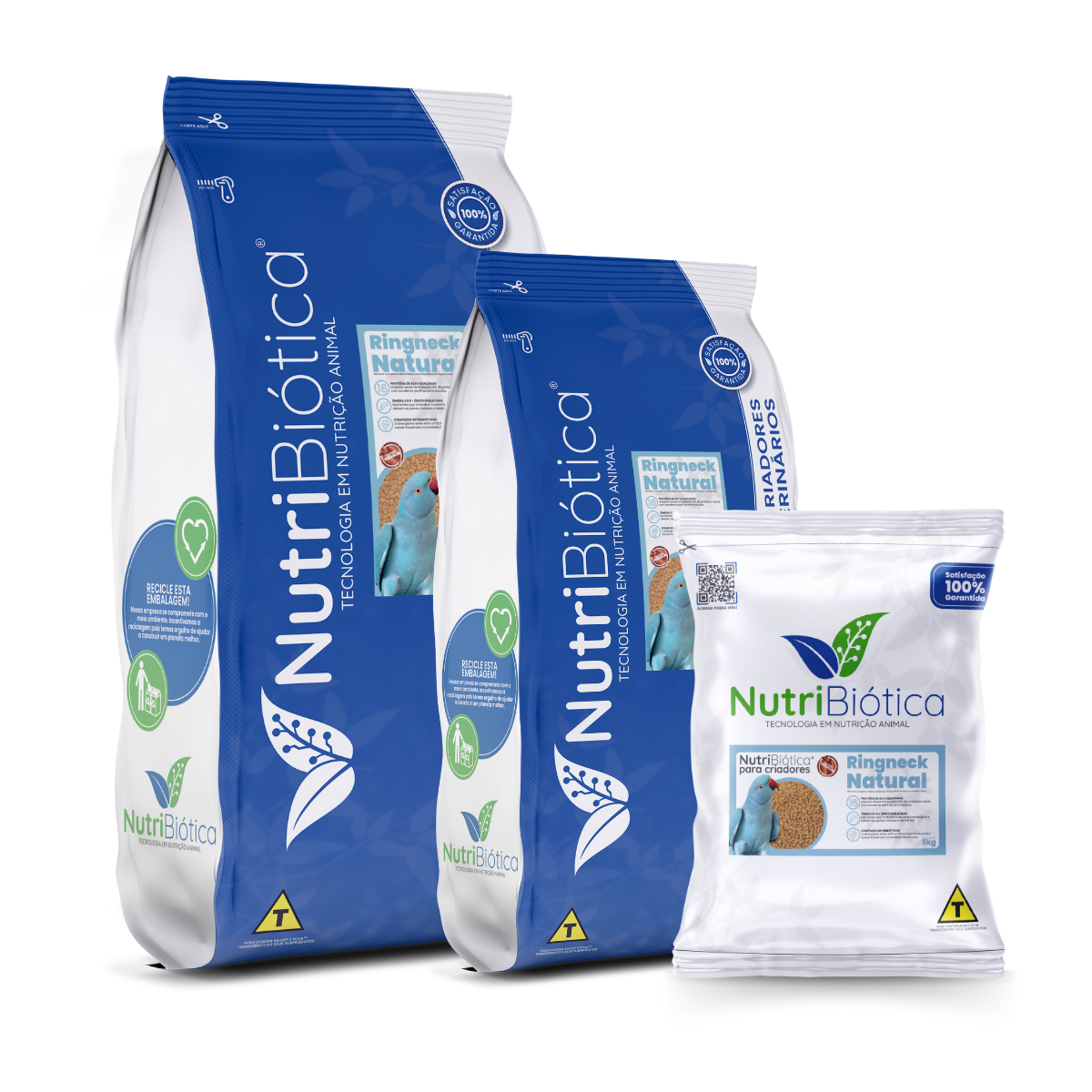 Nutribiótica Ringneck Natural Super Premium é um alimento completo e balanceado para Ringneck em todas as fases. Embalagens plásticas com barreira luz e oxigênio de 5kg, 10Kg e 15kg.